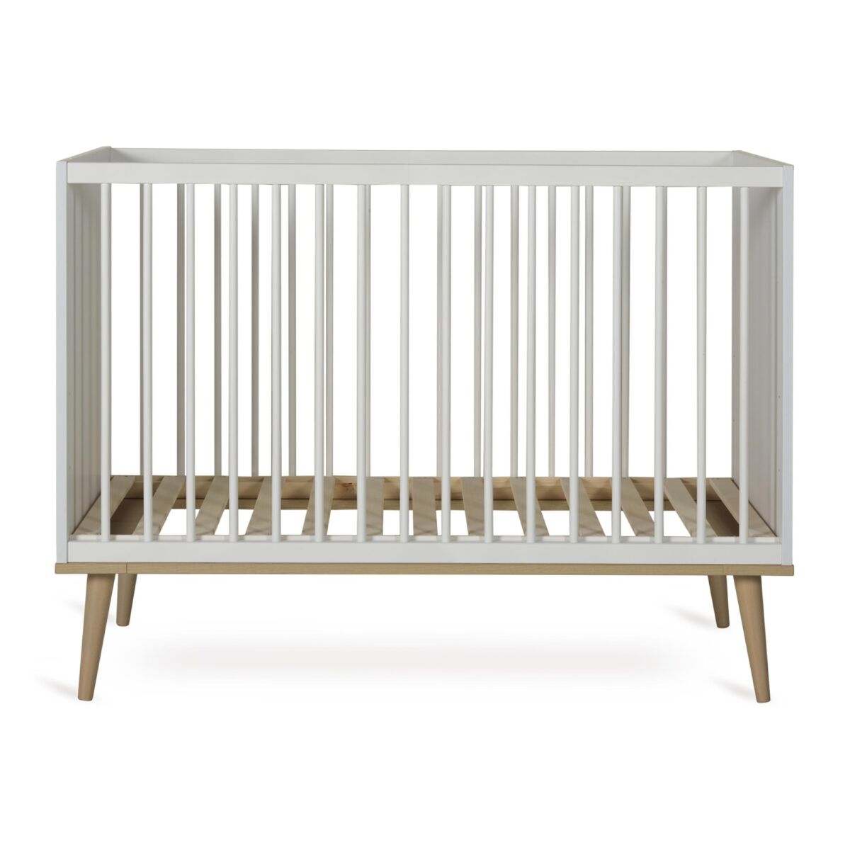 Le fond du Lit Flow est réglable à trois hauteurs différentes (30 cm, 45 cm et 60 cm), vous permettant d’offrir toujours le lieu de repos parfait pour votre petit, quelle que soit sa phase de croissance. Cela offre non seulement de la commodité, mais prolonge également la durée de vie du lit. Le lit est fabriqué en bois certifié FSC, soulignant notre engagement envers la durabilité et la qualité. Les quatre pieds en hêtre massif ajoutent une touche d’élégance naturelle au design, tandis que les côtés sont en panneaux de particules mélaminés. Les côtés avec barreaux sont en bois de hêtre massif et finis avec un vernis polyuréthane, testé selon les normes strictes EN 71-3 pour la sécurité des produits pour enfants.